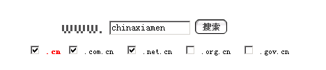2、輸入您需要查詢的域名如:chinaxiamen.cn,那么請輸入chinaxiamen,然后選擇.cn后綴。