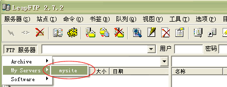 5.您可以点击上图5处“连接”按钮,直接进入连接状态;也可以回到主菜单点击 “FTP 服务器”-> “My Servers”