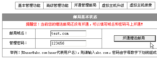 2> 点击"开通管理邮局",填入域名和管理密码,注意前面不能填"mail."